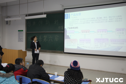 大赛伊始,惠春丽老师详细介绍了本次比赛的竞赛形式、竞赛内容及评分规则,并宣布本次比赛正式开始。随后各位参赛选手对自己的参赛项目进行了说明,并分析了各自参赛项目的优势所在。评委老师也就各参赛项目普遍存在项目设计不完整、赢利点不足、项目各节点的连接不完整以及创业项目初期建设过于复杂等问题提出了修改意见,并希望各竞赛团队在随后的时间里与指导老师紧密联系,进一步完善竞赛作品。