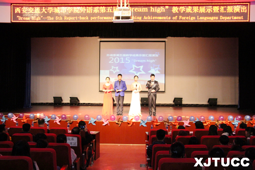 为加强课堂教学与专业实践的联系,本着学习与娱乐相结合的宗旨,12月16日晚,以“Dream high”为主题的外语系第五届教学成果展示暨汇报演出在教二报告厅举行。外语系副主任赵永生、外语系日语专业首席教授李国栋、经济系团工委书记廉宇婷、艺术系团工委书记李成、计算机系团工委书记刘敏涛、院团委丁义伟及部分任课教师担任嘉宾观看了本次演出。