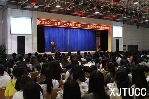 为帮助新生尽快融入大学生活,树立正确的学习生活目标,展开新的人生旅途,西安交大城市学院管理系于2015年9月9日19时在大学生活动中心召开了“2015级新生入学教育之新老生学习经验交流会”。参加此次交流会的有管理系学生工作主管刘健、团工委书记朱艳丽、学工办刘虎、张德馨、李汀老师以及管理系2015级全体新生。