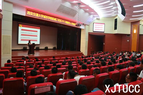 9月6日晚,西安交通大学城市学院机械工程系在教二报告厅召开2015级新生职业生涯规划与入党启蒙教育。此次主题教育会分别由鱼晓辉老师和王姣老师担任主讲,杨耀辉老师主持召开,机械工程系学工主管霍伟森老师及全体辅导员老师参加了此次主题教育会。