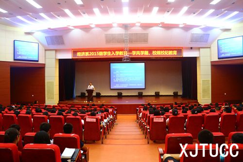 为了使大一新生进一步学习我院学生日常管理内容,8月31日晚19:00,经济系在教二报告厅成功开展了新生入学教育第四部分——学风学籍及校规校纪教育。本次报告会由经济系学工办雷少飞老师主讲,叶超老师主持,参与本次报告会还有经济系团工委书记廉宇婷、新生辅导员张富东老师和2015级全体新生。