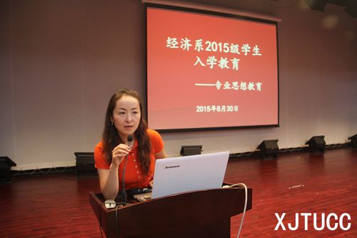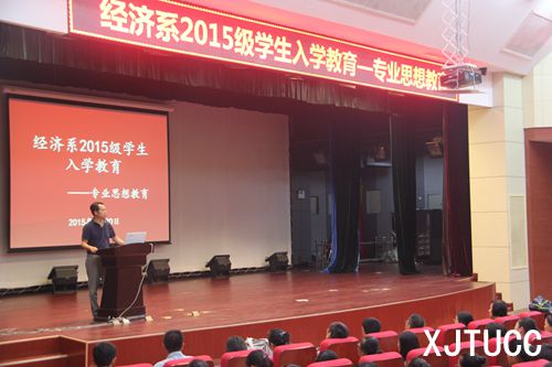 下午2点30分,以专业思想教育为主题的报告会在教二报告厅举行。经济系副主任史冬梅老师、郭关科老师、各专业负责人以及经济系学工办的辅导员老师们一同出席了本次会议。会议上,郭关科老师一方面介绍了学院的办学理念和教学设施、另一方就经济系师资力量、社会实践平台,专业特色活动等方面进行系统的讲解。国际经济与贸易、金融学、财政学、经济统计学、市场营销五个专业负责老师,更为具体的为新生们介绍关于各专业的培养目标、课程设置以及就业方向等。通过此次专业思想教育,2015级新生们对所学专业有了一定的认识,学习目标更加清晰明确。希望同学们珍惜光阴,勤奋学习,守正创新,在西安交大城市学院的舞台上绽放自己的光芒,为学院增光添彩!