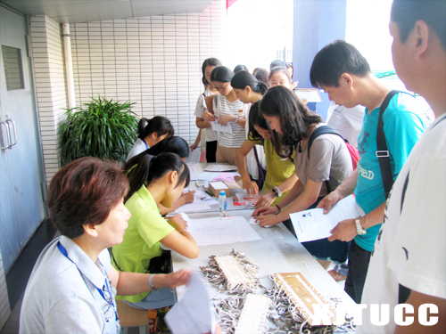 新生报名工作在我院活动中心三楼开展,活动大厅内人头攒动,志愿者们不断安抚情绪焦急的家长与新生,并详细为其讲解报名流程和注意事项。校门口喷泉处的接待志愿者不畏酷暑,热情洋溢地带领新生熟悉校园环境,让新生一踏入校园便感受到校园的亲切与温暖。与此同时,公寓楼下志愿者有条不紊地协助宿舍管理人员进行新生入住登记工作;医务志愿者在校内新生体检处维持秩序,保证新生体检工作有序高效进行;在火车站等候站点的志愿者为刚下火车的新生及家长提供引导和讲解服务,帮助外地新生了解我院、了解西安。