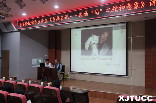6月4日晚,著名画家韩少立先生《自说自话--谈画“马”之精神意象》讲座在西安交大城市学院F100报告厅举行。艺术系全体师生参加,讲座由艺术系主任助理张春新主持。