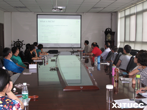 5月29日下午,西安交大城市学院计算机系特聘教授周建龙来学院进行学术交流和科研指导工作。为推动计算机系科研工作的有效进行,在过去的三年时间里,周建龙教授指导本系教师就如何确定科研方向,怎样开展科学研究,并在不断解决研究难题等方面进行了一系列卓有成效的工作。