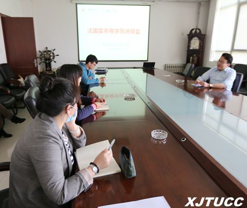 2015年4月15日中午12:30,法国雷恩商学院中国办公室金鹏老师为西安交通大学城市学院2015年秋季赴法国项目申请的学生进行了详细的面试辅导、手续办理、签证申请等项目说明。党政服务中心外事办公室孙晓、冯欣参加了活动。