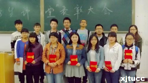 4月9日晚8点,西安交大城市学院电信系在D300举行“学生讲堂”活动总结表彰会。系团工委书记张天,学工办闫新慰、马佳辰老师和2014级部分学生参加了此次会议,大会由教改电142班党荟同学主持。