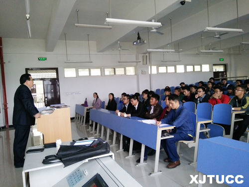 本次活动在嘹亮的国歌声中拉开了序幕。刘健和陈杜昊老师先后上台发言,对城市学院工商管理专业的发展、历年所取得的成绩和就业的方向等做了详细的介绍,同时还鼓励学生们要抓住时代机遇,在全面深化改革和"一带一路"区域经济战略的大背景下,立足西安放眼全国,通过自己的努力去创造自己的精彩人生。接着,管理系副主任赵乃斌老师以"学业职业事业业业相通,昨天今天明天天天向上,活在当下"的对联开始了讲话。赵老师丰富地利用了板书、多媒体、实物道具,并采用了个人讲授和现场提问等形式,生动地讲解了工商管理专业的人才应该具备怎样的专业素质以及如何提高这些专业素质,现场同学积极参与,反响热烈。随后,来自京东全国客服中心校企经理蔡鹏和陕西丹尼尔企业集团招商部高管王杰相继发言,他们以企业的视角以及个人的发展经历为索引,向学生们介绍了西安企业发展近况和工商管理专业的发展前景,鼓励学生尽早规划自己的职业生涯,积极参加企业的各项实训。