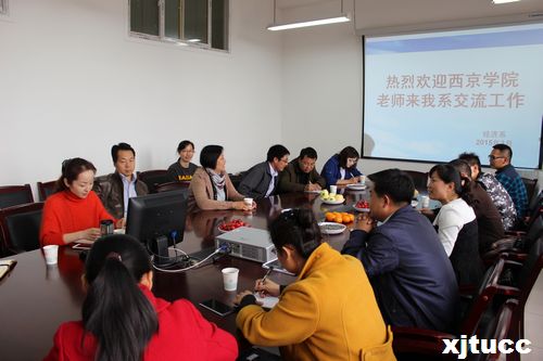 2015年3月31日下午,西京学院受西安交大城市学院经济系邀请,西京学院学生科长段领一行9人来城市学院开展工作交流。经济系副主任史冬梅、副主任郭关科、学生工作主管刘静以及全体辅导员参加了座谈会,会议在二号教学楼225会议室召开。