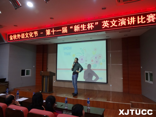 为提高大学新生对英语学习的热情并展示当代大学生风采,西安交通大学城市学院第十一届"新生杯"英文演讲比赛于10月29日晚7时在F100隆重举行。出席本次比赛的嘉宾有经济系主任杨健全,管理系常务副主任冀祥,外语系副主任韩红建、赵永生及部分外语教师。