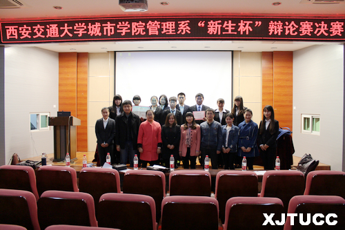 10月31日,西安交大城院管理系"新生杯"辩论赛在F100报告厅圆满落幕。参加本次辩论赛决赛的老师有:管理系团工委书记朱艳丽、学工办张曦元、韩珺、陈杜昊和刘虎老师。活动由会计142班李苑同学主持。