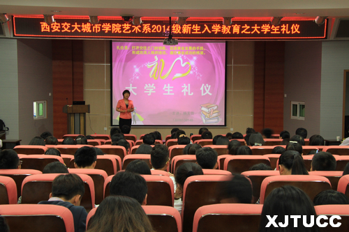 9月11日晚,西安交通大学城市学院艺术系2014级新生入学教育之大学生礼仪讲座在F100举行。讲座邀请到全国专业人才委员会礼仪委员,教育部专业人才库高级礼仪培训师杨芙蓉担任主讲嘉宾,艺术系全体教职工和2014级学生参会。会议由学生工作主管刘涛主持。