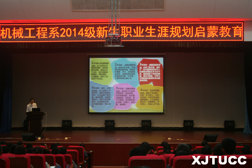 为了引导2014级新生做好大学生涯职业规划,西安交通大学城市学院机械工程系于9月11日晚在教二报告厅召开了2014级新生职业生涯规划启蒙教育讲座。出席本次大会的领导有系主任杜彦亭、常务副主任郑爱平、实验室主任罗来勤、教工党支部书记孙明、学生工作主管杜亚辉、各位任课教师及全体辅导员老师。本次大会由鱼晓辉主持。
