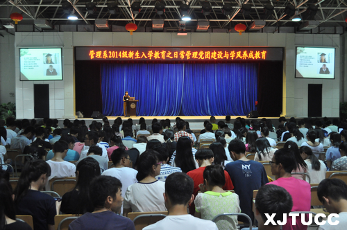 为帮助2014级新生了解日常事务与党团关系,培养学生养成追求卓越、勇于探索的学习精神,西安交大城市学院管理系于9月2日19:00在大学生活动中心举行"2014级新生入学教育之日常管理、党团建设与学风养成教育活动"。管理系学生工作主管刘健、学工办王佩、张杰、张曦元、蔡婷、李玉婷、陈杜昊老师以及2014级全体新生参加本次活动。
