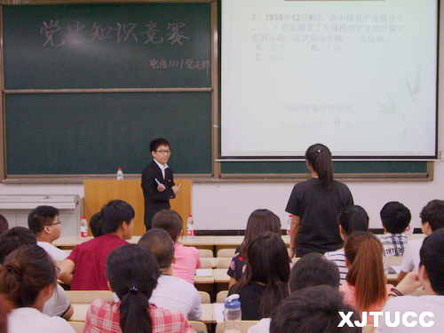 为了传承红色文化,弘扬时代主旋律,进一步增强大学生对党的历史等基本理论知识和时政要闻的深入了解和学习,帮助学生党员提高学习党史的积极性,西安交大城市学院电信系1101党支部于5月28日在D100举办了以"党的光辉照我心"为题的党史知识竞赛。竞赛邀请了电信系团工委书记张天、电信系1101党支部书记刘秋鸽等学工办老师作为本次竞赛的特邀评委,对比赛全过程进行监督。