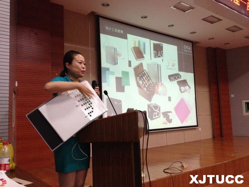 讲座中,张昕瞳老师以"色彩设计如何应用于各行业"为主题,以流行色、产品色彩、环境色彩、个人色彩、色彩心理为主要内容,通过实例剖析国内色彩应用现状,并提出色彩应用困惑的解决之道。最后她针对同学们提出的关于色彩疑惑的问题进行了专业的解答。