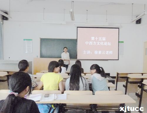为提高学生对外语学习的兴趣,营造良好的外语学习氛围,西安交通大学城市学院外语系举办的第十六期中西方文化论坛讲座于2014年5月7日下午4点在C316教室圆满结束,本次论坛特邀外语系教师徐素云为英语专业学生作精彩的报告。