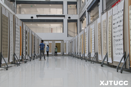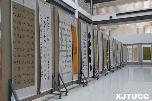 2014年5月19日上午,西安交大城市学院艺术系2011级书法结课习作展在教学楼D座大厅开幕。艺术系主任解安宁教授,系主任助理张春新,系办公室主任程颖等莅临开幕式,并对参展作品进行点评。展期为5月19日-23日。