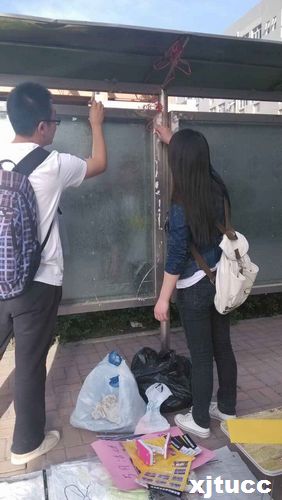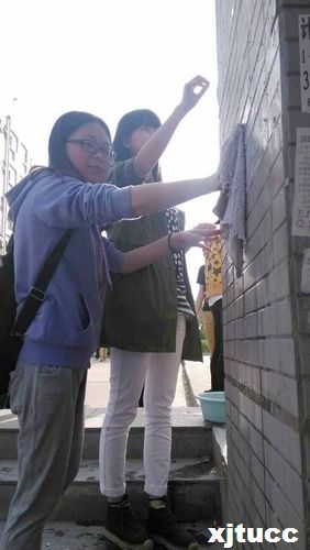在此次活动中,同学们自发的带着水盆、抹布、扫帚等清洁工具,沿着校园主干道两边认真擦洗宣传栏、清洗垃圾桶、清除墙面上的小广告、捡拾绿化带里的垃圾等等,使得校园主干道两边环境卫生状况得到了很大的改善。