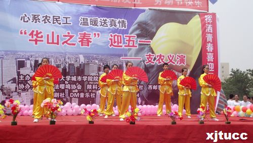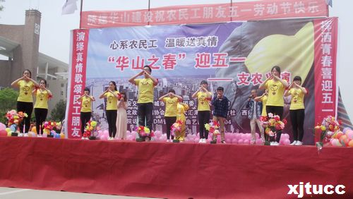 2014年4月27日上午10:00,以“心系农民工,温暖送真情”为主题,由西安交大城市学院院团委主办、支农促进会、学生艺术团携手承办的“庆五一工地义演”,经数日准备,终于在西北政法大学长安校区隆重拉开帷幕。