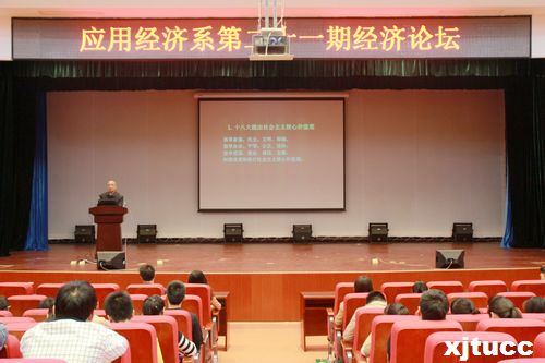 4月23日中午2点30分,西安交通大学城市学院应用经济系第21期经济论坛在教二报告厅如期举行。本期经济论坛特别邀请到了西安交通大学靳英辉教授,他以“学习与践行社会主义价值观”为主题为同学们作了一场精彩的报告。本次报告由应用经济系学生主管刘静主持,应用经济系学工办全体老师、学生党员以及入党积极分子到会参加。