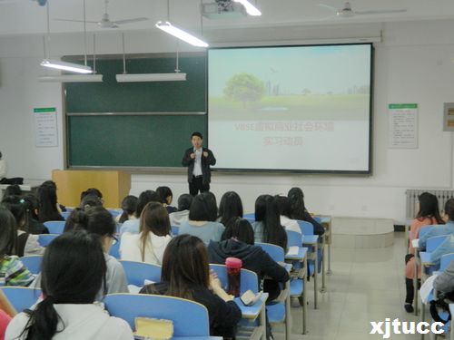 为提高学生的实践能力,探讨实践性教学的方式方法,达到培养应用型人才的目标,西安交通大学城市学院管理系于4月9日在教2-216开展了“虚拟商业社会环境VBSE”体验课的前期动员活动,管理系各专业的150多名学生参加了活动。本次活动旨在使学生充分了解管理系实践教学活动的相关内容和本次体验课程的具体流程,同时选拔优秀学生参加12日、13日两天的体验课程。