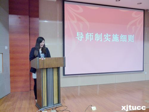 此次大会分为三个阶段,首先,外语系副主任韩红建对导师制进行了详细的介绍,强调了导师制的实施细则,引用牛津大学的实例向到场师生阐释了导师制的积极作用,并借此表述了自己对导师制的独到见解。随后,英语101班的张静怡同学结合自己的亲身经历,向到场师生讲述了导师制在学生大学生活中所起到的促进作用。最后,外语系副主任赵永生根据自己的导师经历,给到场师生提供了实用、可行的建议,要求同学们要积极与导师联系交流,争取取得双赢的效果,并呼吁师生共同促进导师制的发展。