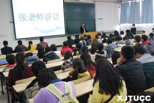 西安交通大学城市学院学生勤工助学中心于3月13日中午12:30在E100教室召开了以"励志图强,勤俭助学"为主题的全体在岗生大会。参加本次会议的有学生服务中心张福全、李霞老师,学生勤工助学中心主席左翔、副主席冯艳兰同学和中心全体成员及在岗生,本次会议由财管306班贾旖旋同学主持。