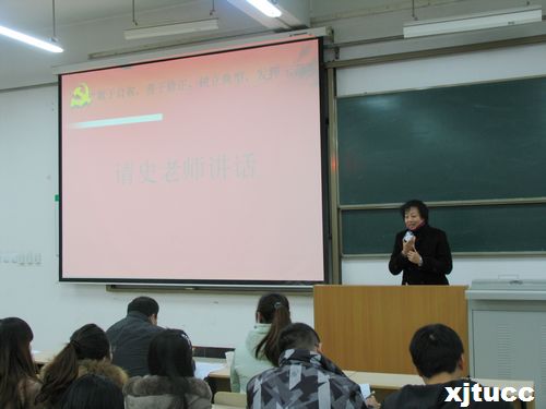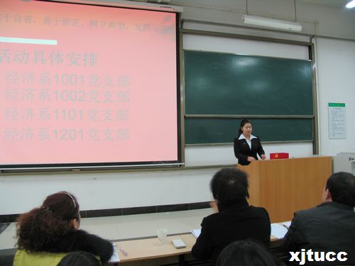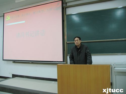 为响应学院党委以“深入贯彻落实十八大及三中全会精神,加强党员素质教育与组织建设”为主题的第六届“五佳党日”活动,西安交通大学城市学院应用经济系学工办于2013年12月26日在E100多媒体教室召开了“敢于自省、善于修正、树立典型、发挥示范”主题系列活动的启动仪式,学院党委书记冯民柱应邀参加了本次活动。