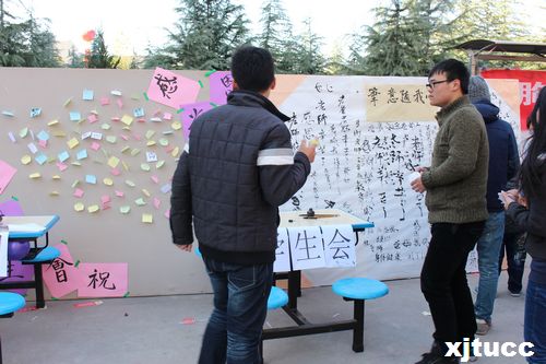 11月28日中午,为庆祝感恩节,让大家都怀着一颗感恩的心去生活,学会感恩。由艺术设计系团工委,学生会举办的“一句话感恩”活动在活动中心楼下举行。