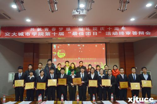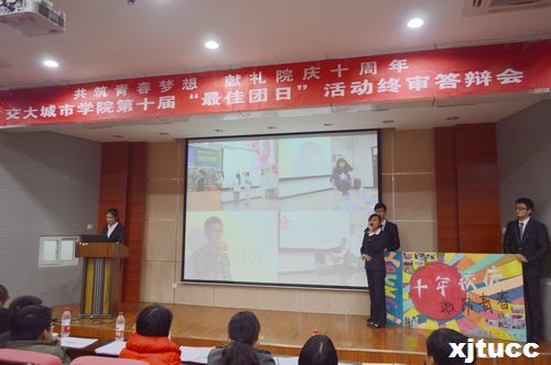 “共筑青春梦想,献礼院庆十周年”——西安交通大学城市学院年度最佳团日活动终审答辩暨总结表彰大会于11月20日晚在F100报告厅隆重举行。院团委书记陈涛,院团委韩树、蔡融融老师及各系团工委书记出席了本次活动。