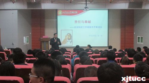 为了提高学生干部的工作能力,更好地为同学服务,西安交通大学城市学院电气与信息工程系于2013年11月19日晚19时在教学楼F100多功能报告厅举行了以“责任与奉献”为主题的学生干部培训大会。院团委书记陈涛,学工办张天出席了本次培训会。