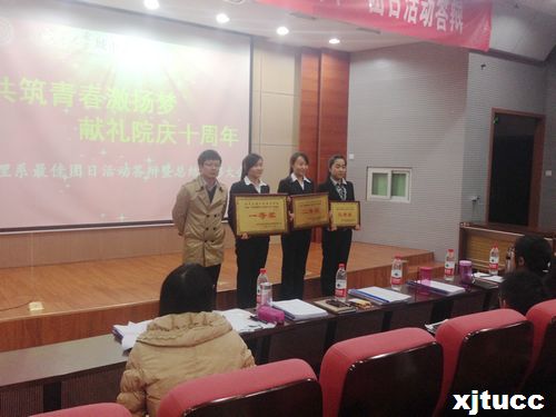 2013年11月15日下午2点,西安交通大学城市学院管理系以“共筑青春激扬梦,献礼院庆十周年”为主题的团日活动答辩在F100拉开帷幕。莅临本次活动的嘉宾及评委老师有管理系学生工作主管曹嘉伟、管理系团工委书记朱艳丽、以及学工办贾凯、王亮、王佩、张曦元、蔡婷、张杰等老师。
