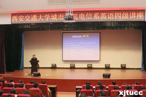 11月13日晚19时,西安交通大学城市学院外语系优秀教师刘慧应电气与信息工程邀请于教二报告厅为学生进行了英语四级讲座。讲座由电气与信息工程李喆同学主持,电信系学工办老师及全系学生一同聆听了刘老师的精彩讲解。
