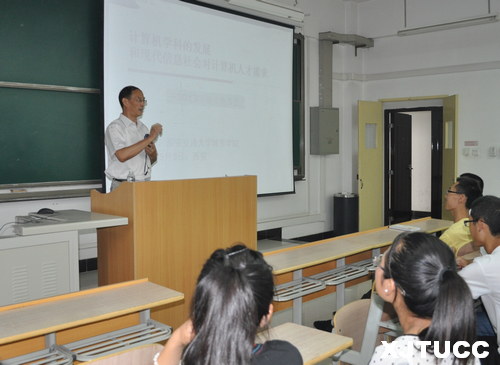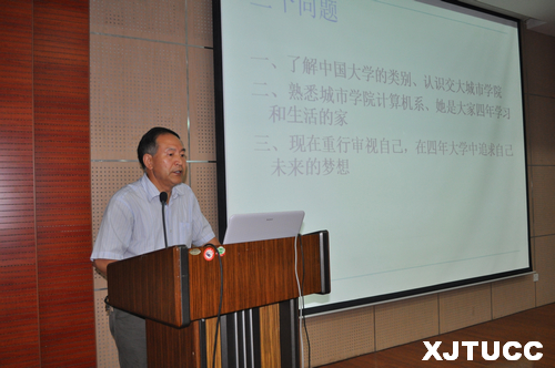 教育活动分专业培养方案介绍、学习规划交流、职业规划指导、党团思想教育与行为规范教育五个单元进行,通过讲座、交流互动、报告会、参观等形式开展。9月3日下午,在首先进行的专业培养方案介绍单元中,系主任缪相林教授为同学们做了题为"城市学院计算机科学与信息管理系专业培养方案介绍"的讲座。缪老师根据教育部和全国教育指导委员会关于计算机专业本科学生的培养规格和要求,结合我院计算机专业的优势与特点,向同学们深入地阐述了学院计算机系各专业的培养方案、培养目标以及具体的实施方案,并就本专业的一些基础理论知识与学科做了详细的介绍;在学习规划交流单元,系副主任李联宁教授、系主任助理杨宏霞、专业教师许大炜、毕鹏三位老师先后就国内外计算机科学的发展现状、社会各行业对计算机人才的需求、专业学科的学习特点与计算机科学在各领域的实际应用等方面和同学们进行深入的交流,另外还组织学生参观了系各专业实验室,帮助同学们入门计算机科学;在职业规划指导单元,院就业指导与校友服务中心主任张学堂老师为同学们做了《走进我的大学》报告会。张老师根据自己多年的工作经验,图文并茂地向同学们阐述了大学的内涵与本质,引导同学们如何适应大学、规划大学、享受大学,如何定位自己、充实自己、推销自己,并对同学们的大学生涯与职业规划进行了详细的指导与说明;在党团思想教育单元,系团工委书记贺婧、系学生党支部全体党员及团工委全体学生干部与同学们一起对党团相关理论知识进行了系统的学习,全体党员与团干践行党的群众路线教育实践活动,主动担任新生的"理想导师",每名党员带领一名团干负责一间新生宿舍,帮助新生尽快地融入大学生活;行为规范教育单元中,系学生工作主管牛彦龙向同学们详细地介绍了学院在学生奖惩、资助等方面的相关制度,并结合实际案例进行生动的说明,引导同学们规范自身行为,严格遵守校园的各种规章制度,不断的创先争优,做一名全面的大学生。