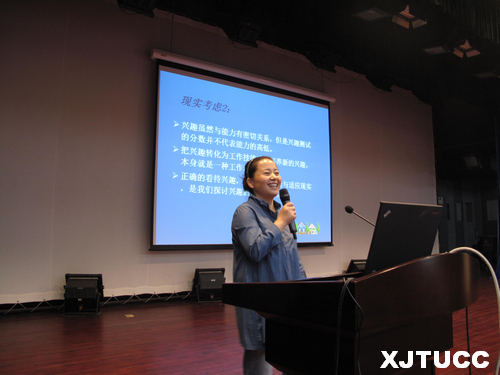 杜老师首先介绍了大学生职业生涯规划的意义,并且希望大学生能够从一进入校门开始,及早树立职业规划的意识,从规划大学学习生活开始规划自己的职业人生。杜老师生动、精彩、全面、系统的讲授调动了同学们的积极性,并通过兴趣探索环节对同学们进行心理测试,极大地吸引了同学们的兴趣。她的讲座引导同学们从现在开始积极主动地进行科学思考,做好自己职业生涯的规划,实现人生价值的最大化。