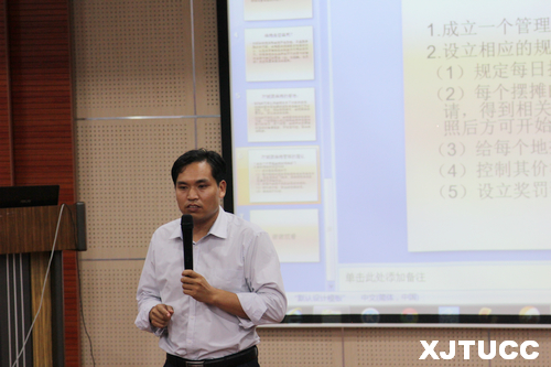 在主持人简短的介绍之后,来自学院七个系、三大院级学生组织共十一个小组的骨干培训班代表们分别上台展示本组的课题成果。本次小组课题讨论的选题都与我们的校园生活息息相关,如学校的地摊文化街、校园里"牛皮癣"广告、杂乱无章的自行车摆放问题等等。各个小组同学对本组项目讨论选题都做了认真的分析,详细而科学的调查,所展现出的一些解决方案和办法对于学院校园环境的美化和改进有一定的借鉴意义。部分项目小组以我院明年十年院庆为契机,以团学干部的身份,用实际行动向母校献礼。