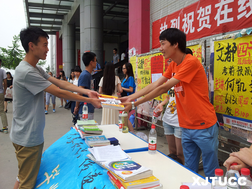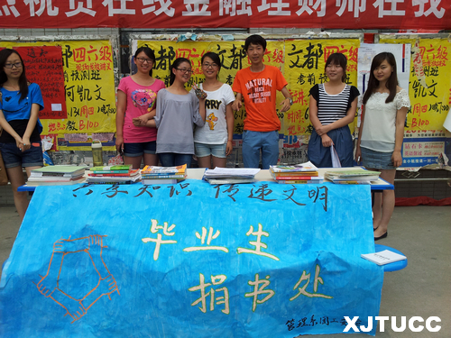 6月17、18日中午,西安交大城市学院管理系在中快餐厅楼下开展了以"共享知识,传递文明"为主题的图书捐赠活动。本次活动的目的是倡导健康、积极、文明向上的毕业文化,从而拓展学生知识面、丰富校园文化知识、营造书香校园气氛、合理有效地利用图书资源。