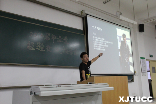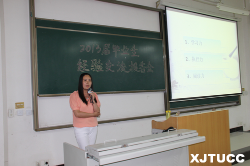 6月13日晚,西安交大城市学院艺术设计系在A400教室举办了2013届毕业生经验交流报告会会,毕业生代表艺术901班考取重庆大学研究生的李鹏辉、顺利找到满意工作的王倩茹,艺术903班考取西安工程大学研究生的冯煜薇和自主创业的马炎。会议由团工委书记杜欢主持,11、12级的同学参加了报告会。