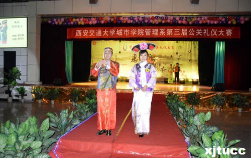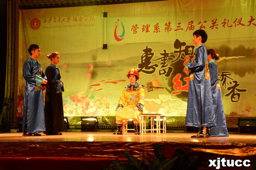 为提高学生的自身修养,传承中华民族传统美德,4月24日晚7点,西安交通大学城市学院管理系第三届“惠书知礼 红袖添香”公关礼仪大赛在活动中心拉开帷幕。莅临本次大赛的嘉宾及评委有:院工会主席王海民,管理系副主任王小青,院团委韩树,外护系学工办负责人蒋芳芳,管理系郭蓉,管理系学工办负责人曹嘉伟,团工委书记刘健以及管理系的其他辅导员。