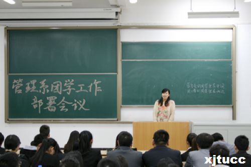 2013年3月26日晚7点,西安交大城市学院管理系团学组织在教学楼E200召开了新学期团学工作部署会议,参加本次会议的有管理系团工委书记刘健、辅导员朱艳丽以及管理系团工委、学生会的全体学生干部。