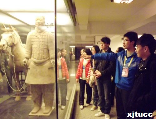 2012年3月18日,在西安交通大学城市学院陕博志愿者讲解队队长李攀同学的带领下,学院30余名陕博志愿者讲解员前往临潼秦始皇兵马俑博物馆参观学习,并与西安工程大学兵马俑博物馆志愿讲解队进行了交流学习。