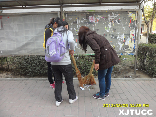 新学期,西安交通大学城市学院学生勤工助学中心“思源”义工服务队积极响应学习雷锋的号召,于3月5日下午在学院中快餐厅门前开展了“学习雷锋精神,清洁校园卫生”活动,为建设和谐美好的校园贡献力量。