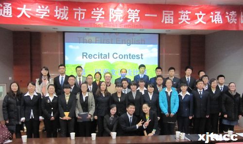 12月18日晚,由西安交通大学城市学院外语系大学英语教研室主办、外语护理系团工委承办的西安交通大学城市学院大学英语课程课外实践活动汇演——“英语美文诵读大赛”在教学楼F100报告厅成功举办。担任此次大赛的评委有外语系副主任韩红建,大学英语第一教研室主任刘慧,外语教师张蕊楠、叶楠、付晓雪、康晓薇以及外教Sarah和Douglas,学院全体大学英语教师莅临观看了比赛。