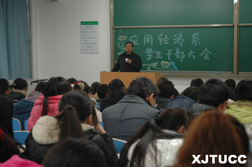 12月13日中午,西安交通大学城市学院应用经济系在教2—221教室召开全系学生干部大会。参加会议的老师有应用经济系主任杨健全,副主任史冬梅,学工办负责人王飞,团工委书记梁玉梅及各年级辅导员老师。本次大会主要内容是对本学期四六级考试及期末考试的工作进行安排。