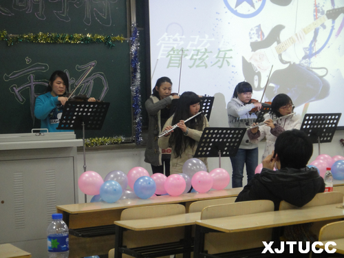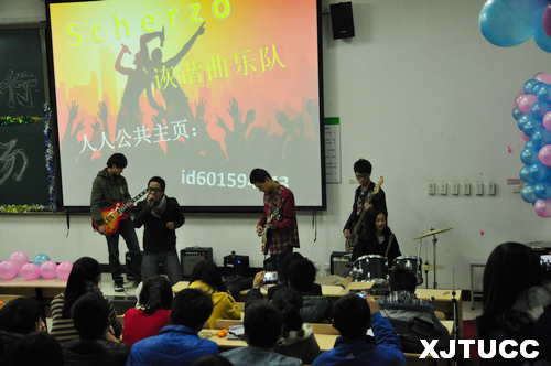 伴随着主持人热情洋溢的开场词,联谊晚会正式拉开帷幕。节目开始是由scherzo乐队带来的摇滚乐,动感十足,震惊全场;紧接着便是由院啦啦操队同学带来的爵士舞,优美的舞姿,激情的表演,让现场观众欢呼不止;接下来则是由管弦乐团带来的“卡农”管弦乐器演奏,为同学们演绎了另一种风格的音乐,让现场观众耳目一新,掌声接连不断;谢伟彤老师的陕北民歌助兴表演更是让同学们兴奋不已!此外还有对口相声、话剧、歌曲串烧等众多节目,形式多样。晚会中还穿插着精心准备的游戏,增加了台上台下的互动,使全场的气氛更加活跃。