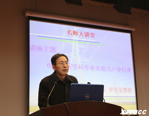 11月29日下午14点整,西安交通大学城市学院电信系在教2报告厅举办了第六期《名师大讲堂》,即《电气工程学科及其相关产业行业》讲座。此次受邀嘉宾为西安交通大学电气工程学院副院长、国家级教学名师罗先觉教授。参加本次报告会的有电信系主任赵录怀教授、电气专业首席教授廖培金副教授、李波波老师、电信系学工办全体老师以及学生近500人。报告会由电信系主任赵录怀教授主持。