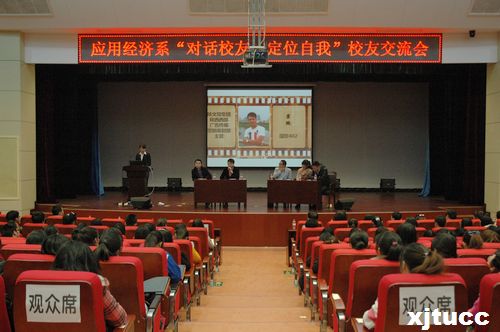 为帮助在校学生解决学习、生活、考研、就业及职场发展等一系列问题,增强学生适应社会的能力,由西安交通大学城市学院应用经济系主办的“对话校友,定位自我”的校友交流会于11月28日晚7点在教二多功能报告厅举行。出席本次交流会的嘉宾有应用经济系主任杨健全老师、副主任史冬梅老师,院团委王瑶老师,应用经济系学工办负责人王飞老师,应用经济系团工委书记梁玉梅老师以及系全体辅导员老师。学院04级校友张兆鹏(工商管理403班 陕文投集团陕西西部广告传媒营销策划部主管)、霍鹏(国贸402班 珠江地产西安分公司销售部经理),08级校友郭智超(金融801班 曾就职于龙湖地产、银泰百货,现就职于陕西信合)、季云裳(国贸802班 现于西安交通大学应用统计学攻读研究生)、姚植远(金融803班 现就职于浦发银行综合会计岗位)受邀参加了本次交流会。