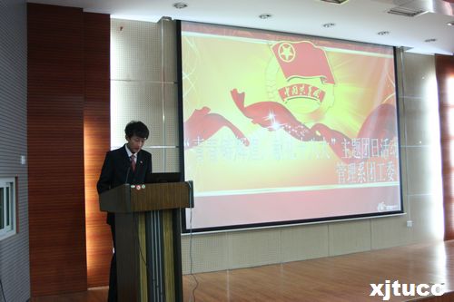 所有答辩环节结束后,由院团委书记陈涛老师对本次团日活动进行了总结讲话,他谈到,此次团日活动历时一个多月,最令他印象深刻的是广大同学丰富的想象力与创新能力,这是当代大学生最不可缺少的优良品质。此次团日活动组织形式更趋多元化,创新性也有了明显的提升,充分围绕“青春铸辉煌,献礼十八大”的主题来开展各类有声有色活动。在办活动的同时让更多的人能了解学院的团学组织,了解西安交通大学城市学院。