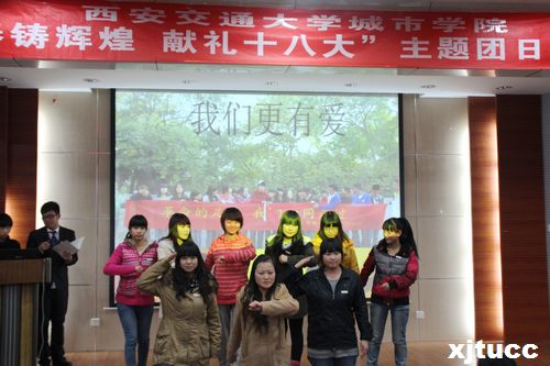 2012年11月22日晚,西安交通大学城市学院“青春铸辉煌,献礼十八大”最佳团日活动答辩暨总结表彰大会,在F100多功能报告厅隆重举行。院团委书记陈涛老师、院团委韩树老师、管理系赵凯老师、计算机系刘敏涛老师、机械系团工委书记霍伟森老师、应用经济系团工委书记梁玉梅老师、电信系团工委副书记韩利娜老师、艺术系团工委书记杜欢老师、外护理系团工委书记汪寸琬老师以及院系各级团学组织主要学生干部出席了本次答辩会。